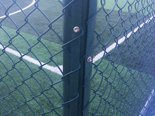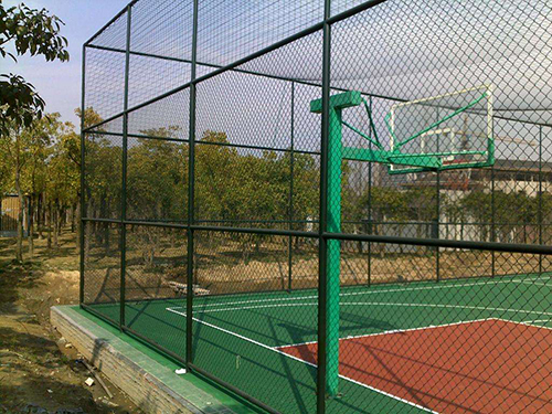 材質:pvc/pe包塑勾花網,內絲采用優質低碳鋼絲鍍鋅處理,外表進行涂塑防腐處理。 生產工藝:編織焊接 表面處理:圍網采用PE/PVC包塑絲,立柱、邊框采用噴塑、浸塑處理 常用規格: 1.包塑絲經:3.8mm; 2.網孔:50mm×50mm;60mm×60mm; 3.尺寸:3000mm(寬度)*4000mm(高度)3000mm(寬度)*6000mm(高度) 4.立柱:直徑60mm圓管,壁厚2.5mm; 5.橫柱:直徑50mm圓管,壁厚2mm; 顏色:一般多采用墨綠色和草綠色,以墨綠色居多。 優點:美觀耐用、免維護、安裝簡單、有較好的防護、裝飾、美化效果。